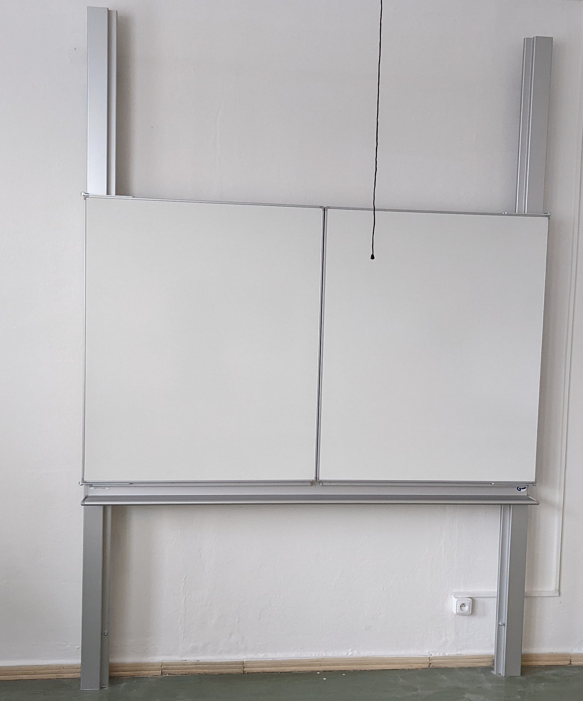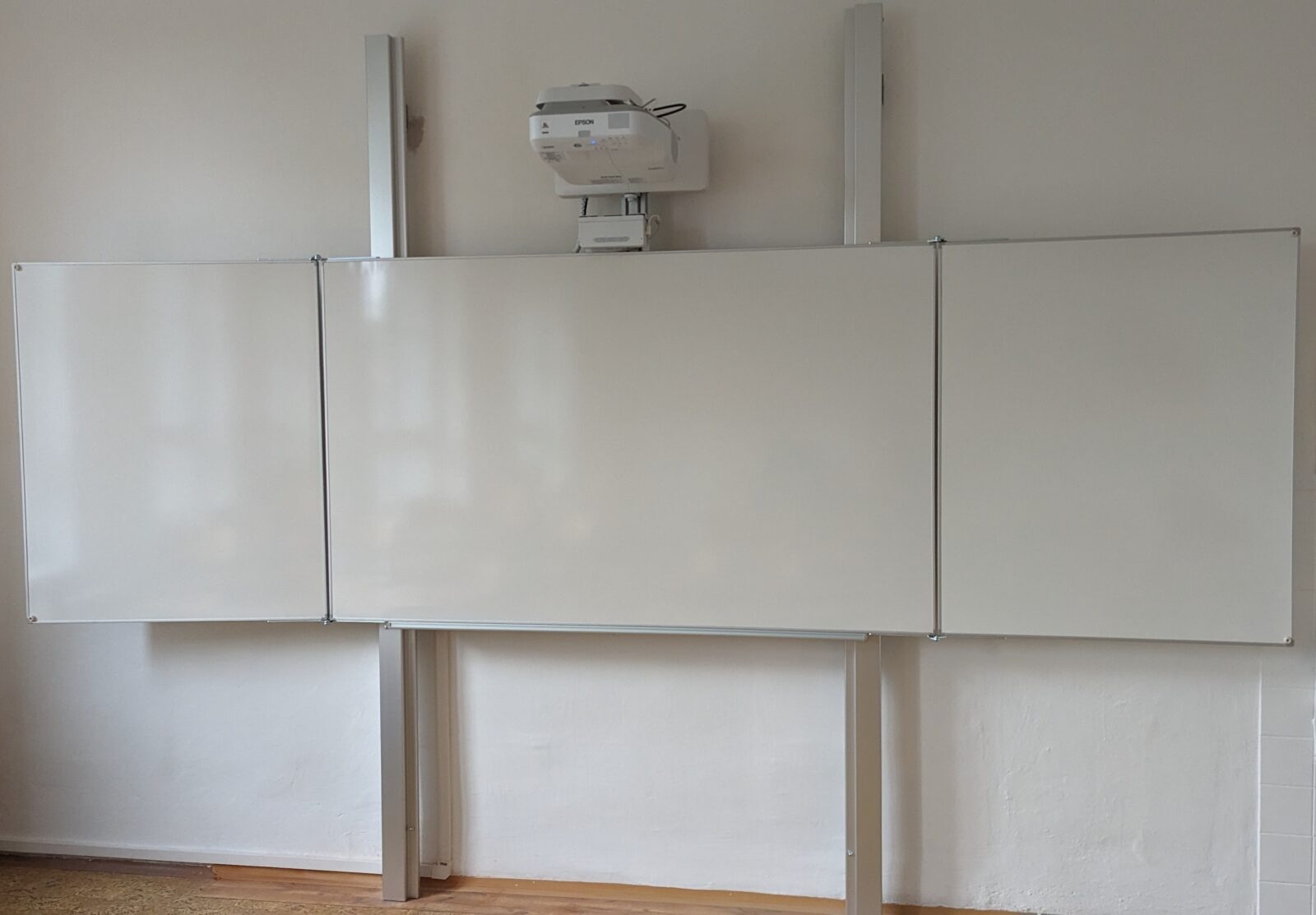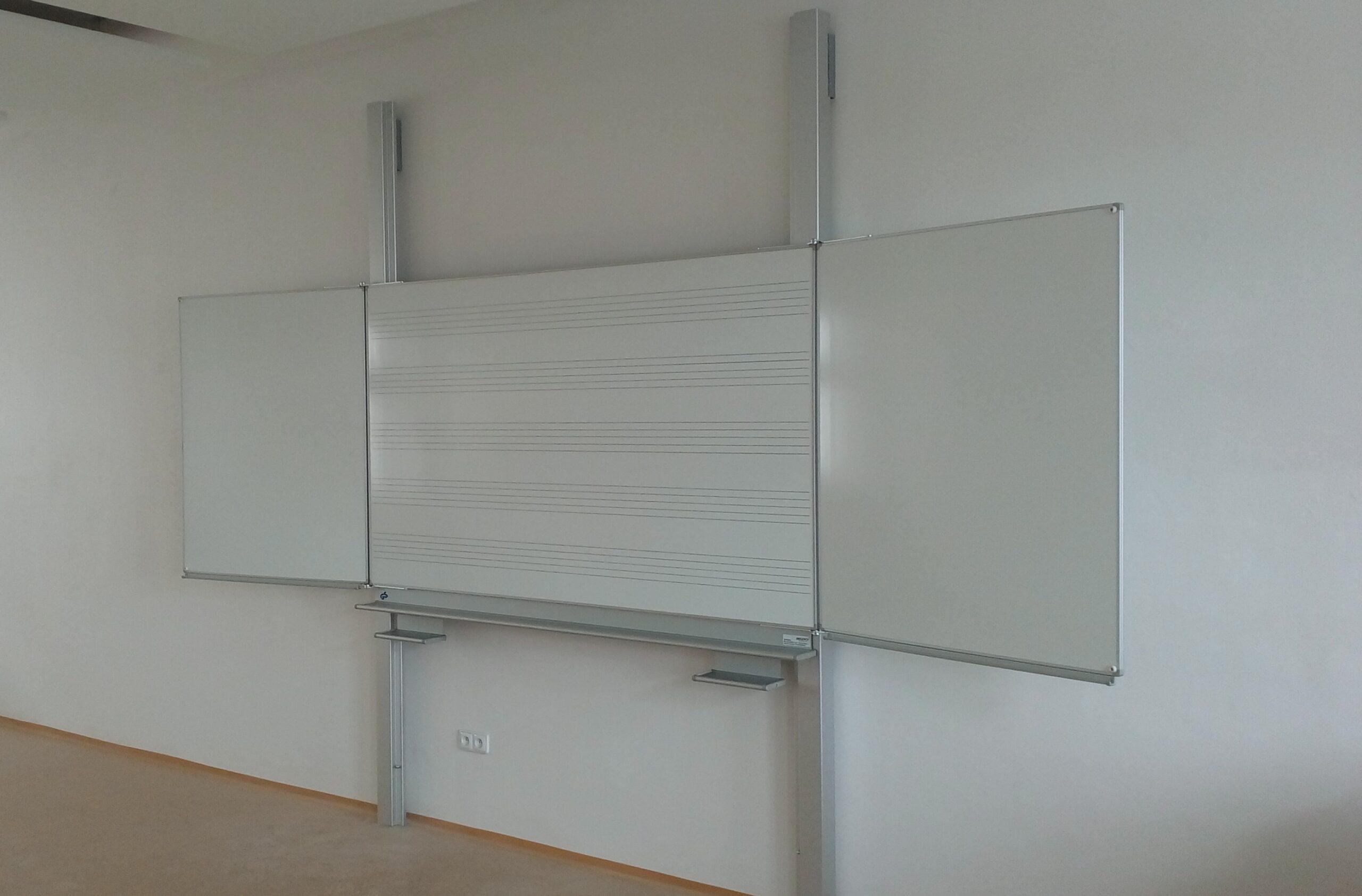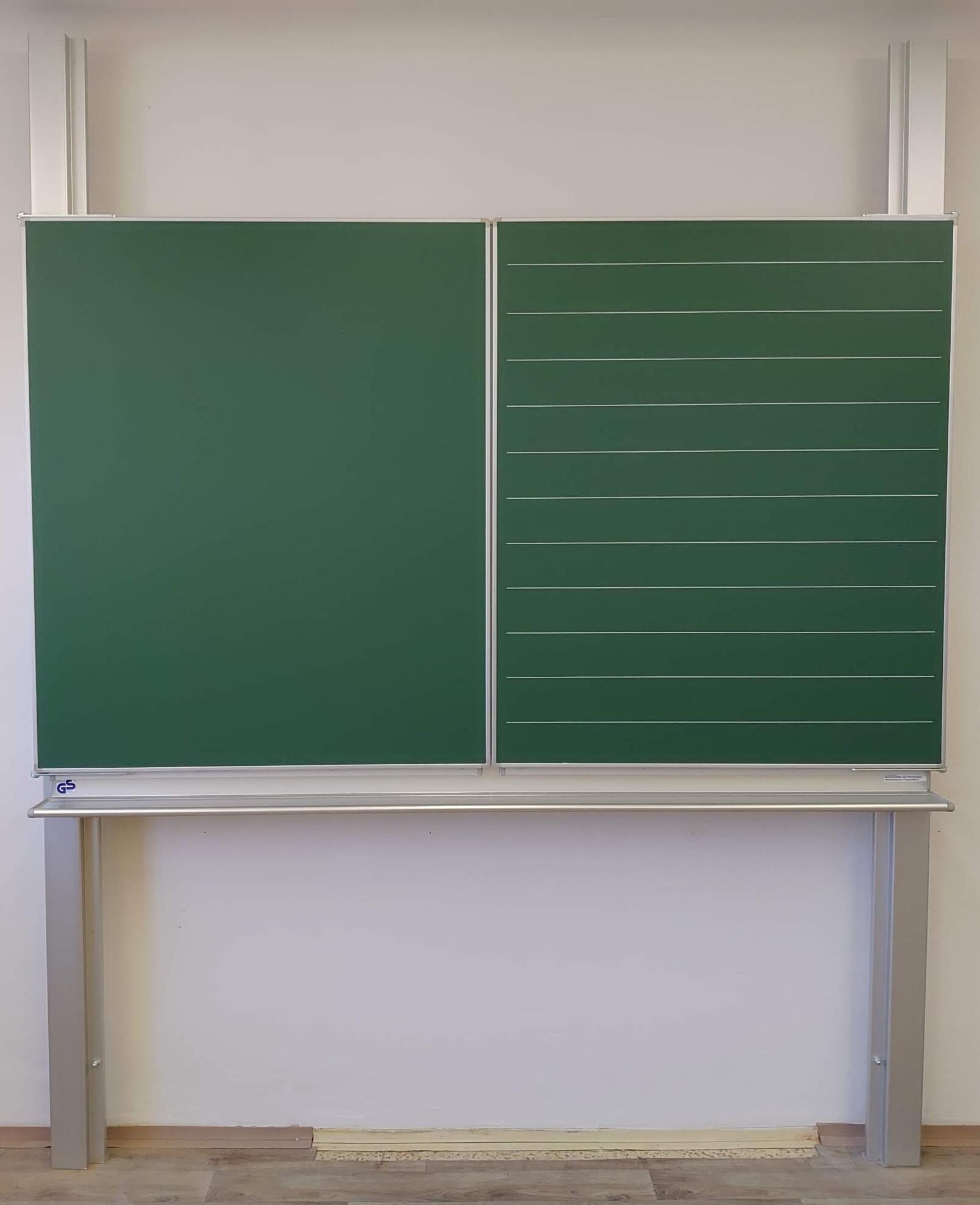 Školní pylonové tabule triptych s magnetickým keramickým povrchem nabízíme se zárukou 25 let. Bezpečné používání pylonové tabule pak zajišťuje speciální zvedací mechanismus umístěný na pylonových pojezdech a závažích.