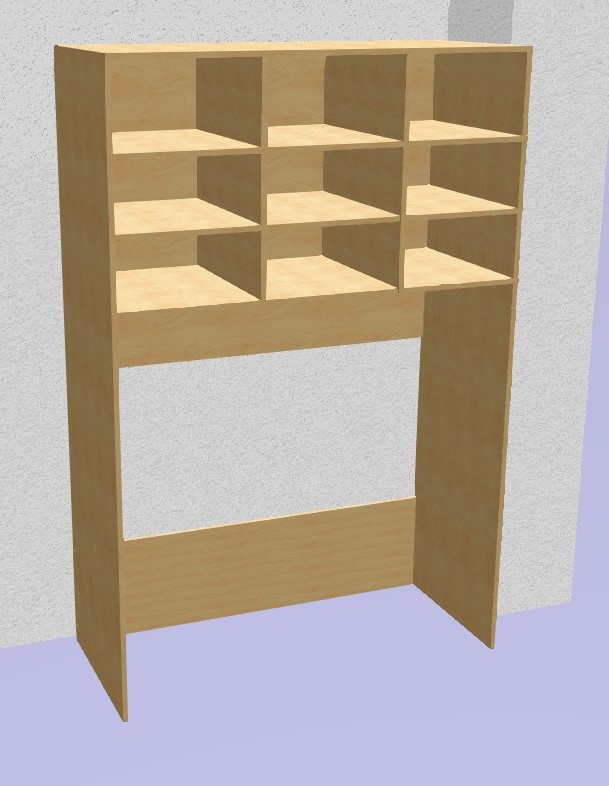 Skříň na lehátka a lůžkoviny, rozměr 1500x2250x650 – (spodní část na lehátka výška 1500, horní část výška 750). Korpus vyrábíme z lamina v tloušťce 18 mm dekor buk 381 Může být doplněno barevnou hranou nebo jakýmkoliv jiným dekorem.