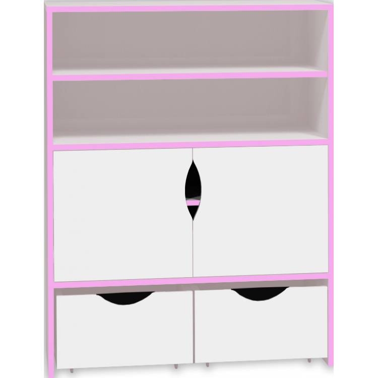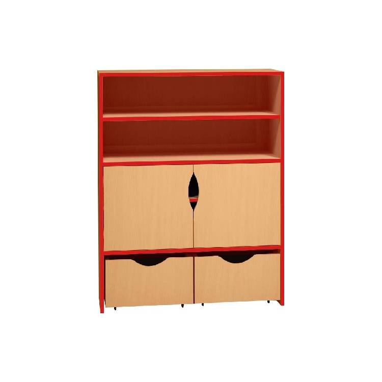 Skříňka s dvířky, kontejnery a policemi široká (š/v/h) 1000x1210x450 mm. Vyrobeno klasickou technologií lepených kolíkovaných spojů. Dodáváno ve zkompletovaném stavu. Zvolit lze dvě barvy dekoru v jakýchkoliv kombinacích (korpus, hrany, dvířka).