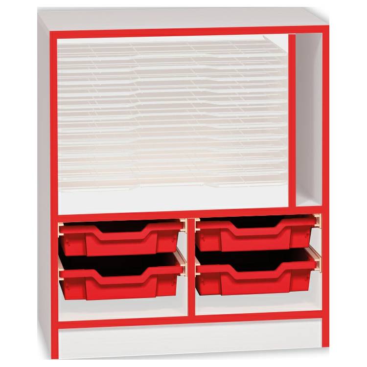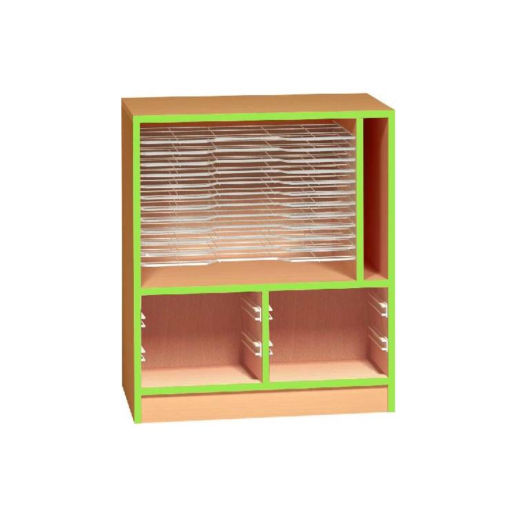 Skříňka se sušákem + plastové boxy(š/v/h) 710x760x450 mm. Vyrobeno klasickou technologií lepených kolíkovaných spojů. Dodáváno ve zkompletovaném stavu. Zvolit lze dvě barvy dekoru v jakýchkoliv kombinacích (korpus, hrany). Skříňky obsahují kolejnice, díky kterým si můžete rozestavení a typ boxů zvolit sami dle schématu u detailu produktu.