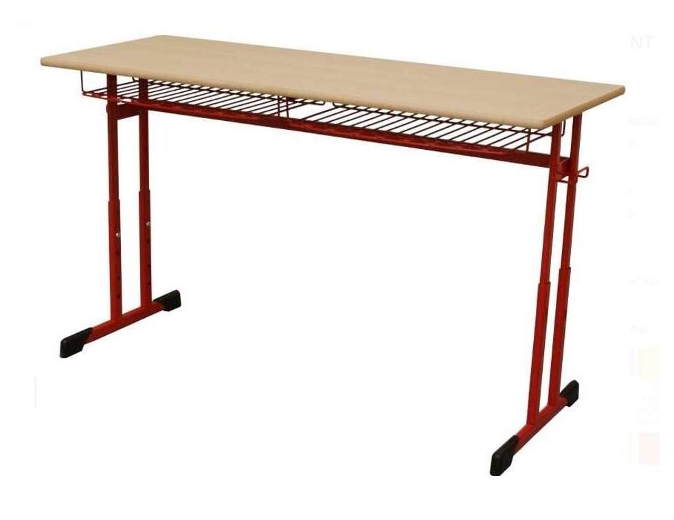 Školní lavice dvoumístná STELA je vyrobena z plochooválových ocelových profilů (38x20 a jekl 30x20 mm). Povrchová úprava lavice do školy stavitelné je vypalovaná prášková barva, součástí konstrukce jsou háčky na zavěšení školní brašny. Nastavení výšky školní lavice pomocí metrického šroubu. Nohy lavice opatřeny plastovými krytkami v černé barvě. Jako odkládací prostor slouží pozinkované drátěné koše. Horní deska z laminované dřevotřísky (1300x500 mm) v dekoru buk tl. 18 mm chráněna kvalitní 2 mm ABS hranou.