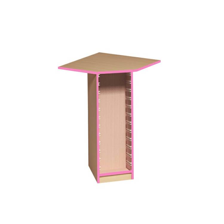 Vnitřní roh střední (š/v/h) 730x1210x730 mm. Vyrobeno klasickou technologií lepených kolíkovaných spojů. Dodáváno ve zkompletovaném stavu. Zvolit lze dvě barvy dekoru v jakýchkoliv kombinacích (korpus, hrany). Skříňky mohou obsahovat kolejnice, díky kterým si můžete rozestavení a typ boxů zvolit sami dle schématu u detailu produktu.