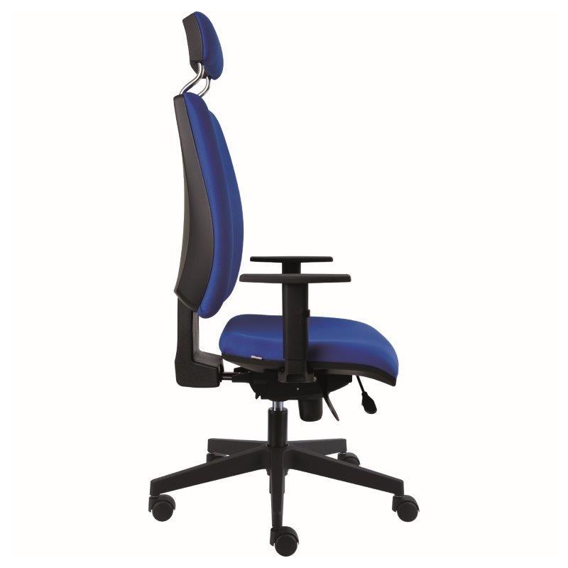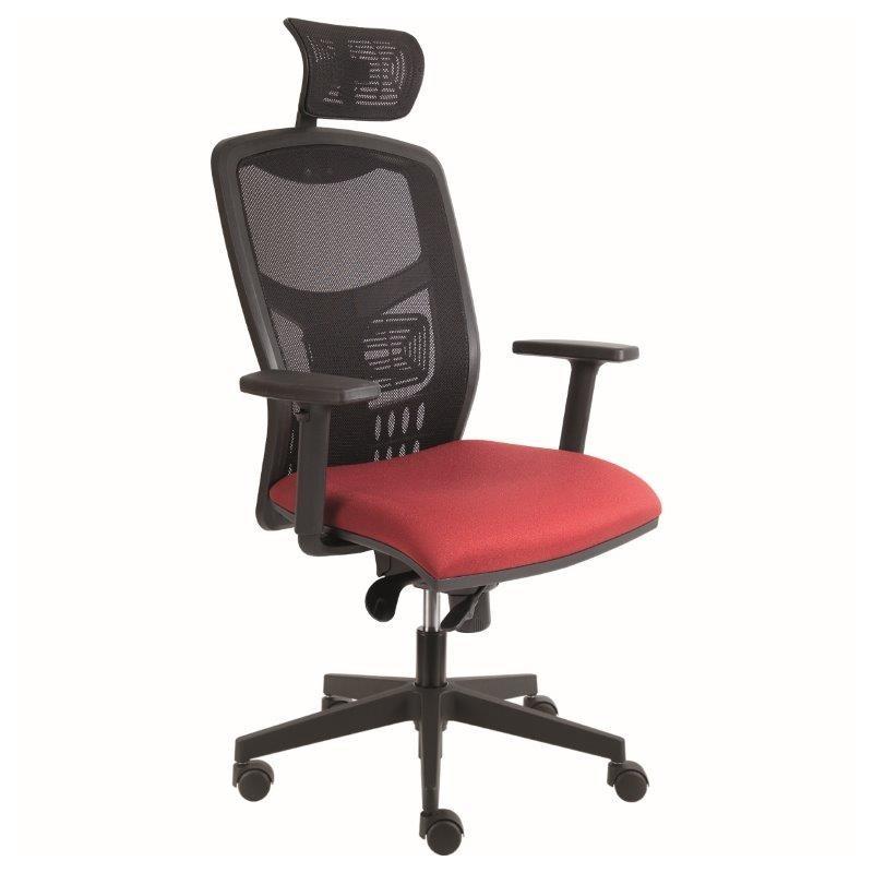 Moderní a oblíbená kancelářská židle s vysokým opěrákem a bohatým čalouněním sedáku i opěráku nebo síťovaným opěrákem. Výškovou stavitelnost opěráku zajišťuje systém UP-DOWN.